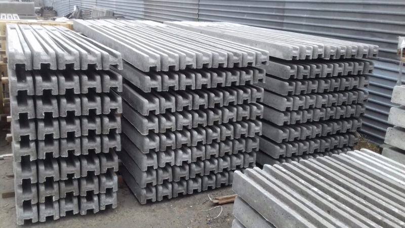 Стовпи для єврозабору є залізобетонними виробами з пазами, в які вставляються секції забору. Поверхня зазвичай гладка або рельєфна, якщо того вимагає дизайн забору.