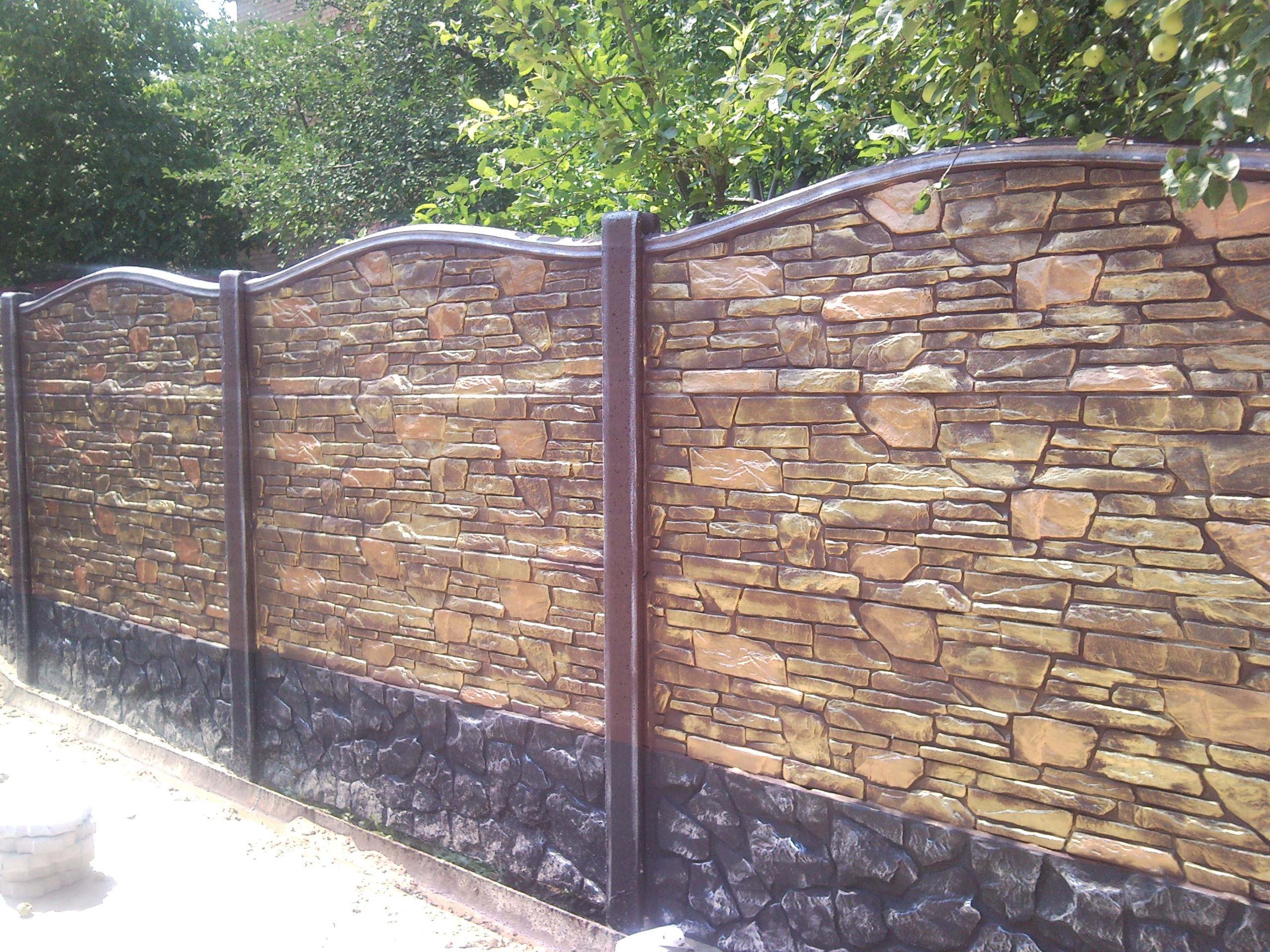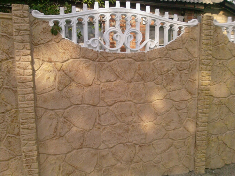 Секція єврозабору – це залізобетонна плита, при заливці якої використовується декоративна форма. У форму заливається бетонна суміш, а для зміцнення використовують залізну проволку, якою підсилюють плиту. Переваги такого вигляду забору в порівнянні з іншими видами сповна очевидні: різноманітність конфігурацій, легкість установки, надійність, зручність в експлуатації і звичайно ж приваблива вартість.